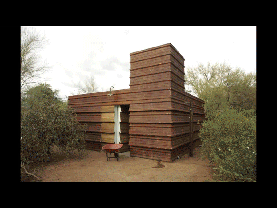 This project was inspired by a simple, highly functional horizontal louvered facades and venting towers found in industrial buildings throughout India. This system provides natural ventilation and diffuse light, while creating striking architectural forms. Translating this unique vernacular to the landscape of Tucson, this project provides an open workshop and tool room protected from the intense desert climate. An angled installation of off-the-shelf steel siding opens up horizontal slats that allow for ventilation and soft, everchanging light throughout the space, while providing the building with its unique architectural profile. In addition, this project is at the center of a system to capturing rainwater runoff, collecting it from the roof of the adjacent house and pumping it to an elevated tank for later use. This system supplies more than 10,000 gallons of water annually, used to irrigate the surrounding gardens.